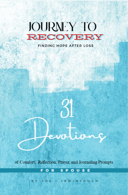 Journey To Recovery – A compassionate devotional created to walk alongside spouses navigating life after loss. Each day offers gentle encouragement, scripture, and reflection to help bring comfort, healing, and renewed hope during a tender season of grief. – View on Amazon